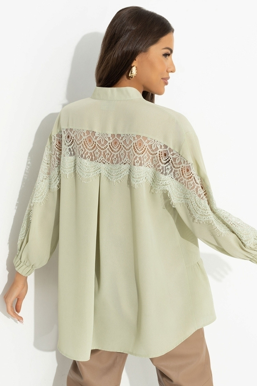 • Изделие дополнено тонким вшитым кружевом по спинке и по рукавам.