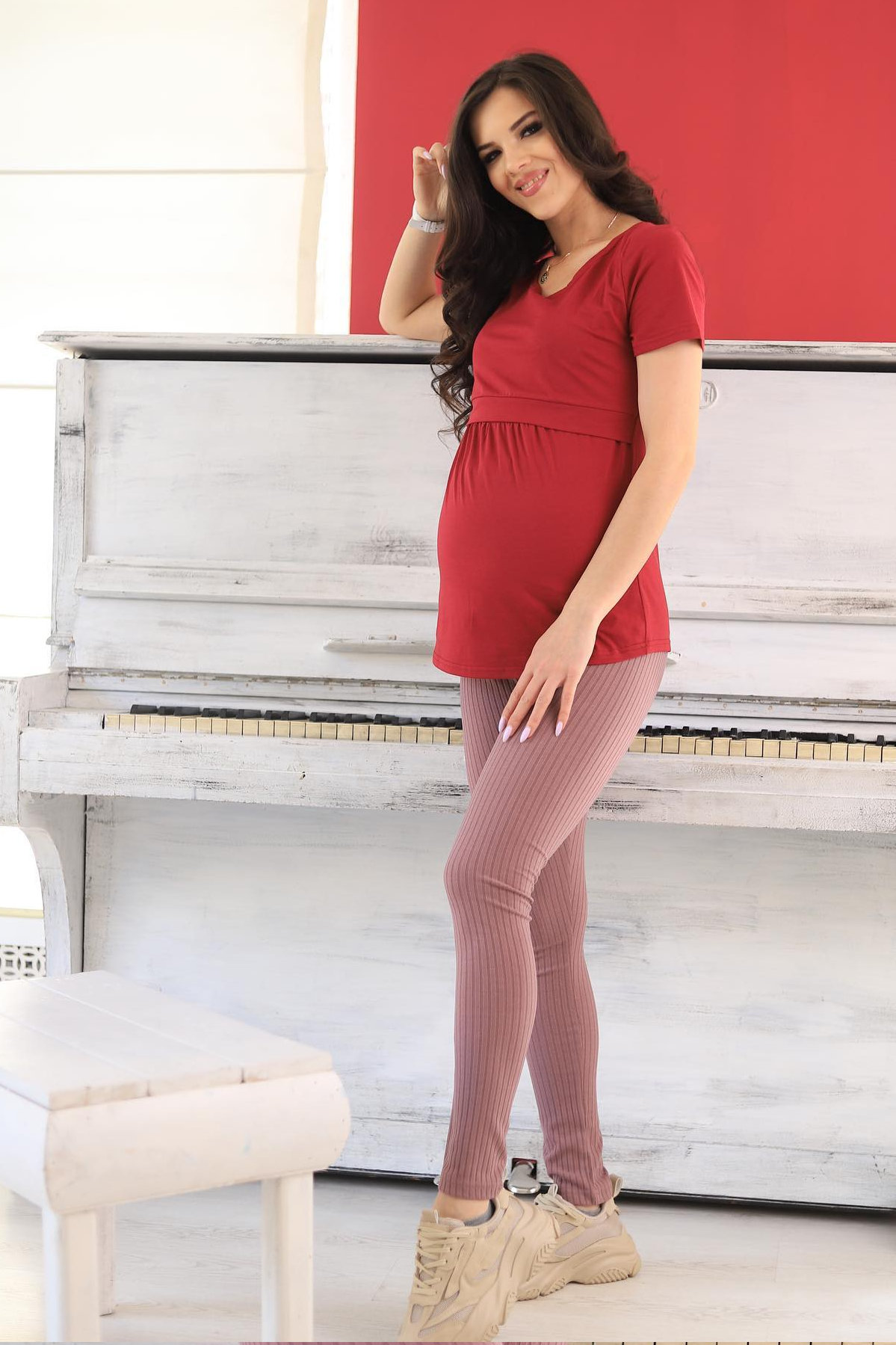Леггинсы для беременных ст868 рубчик т.пудра