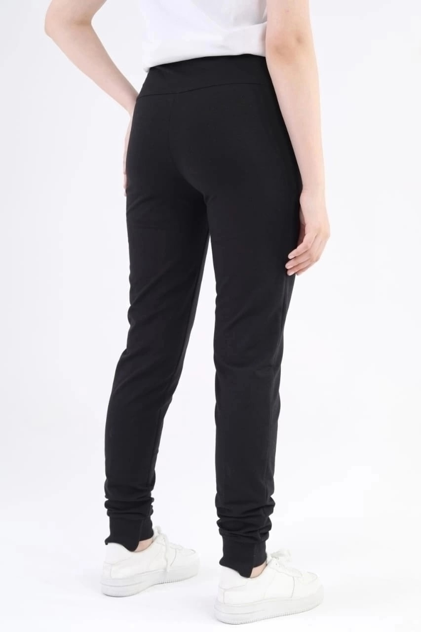 • По низу брюки выполнены трикотажными манжетами.