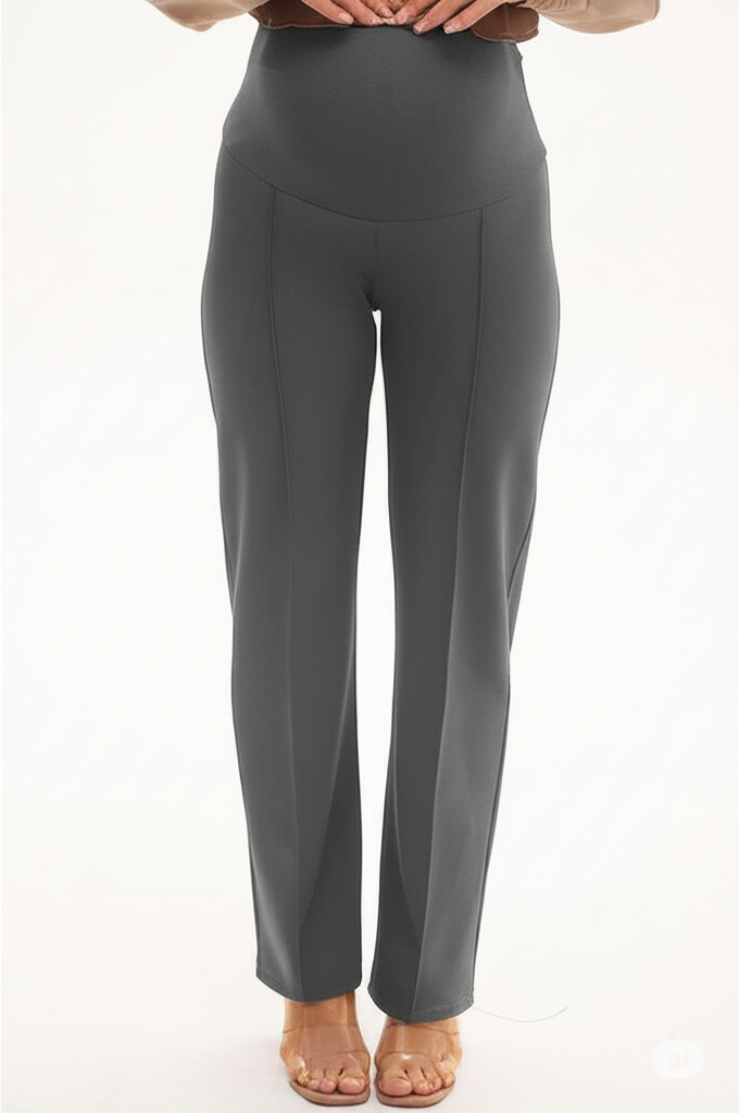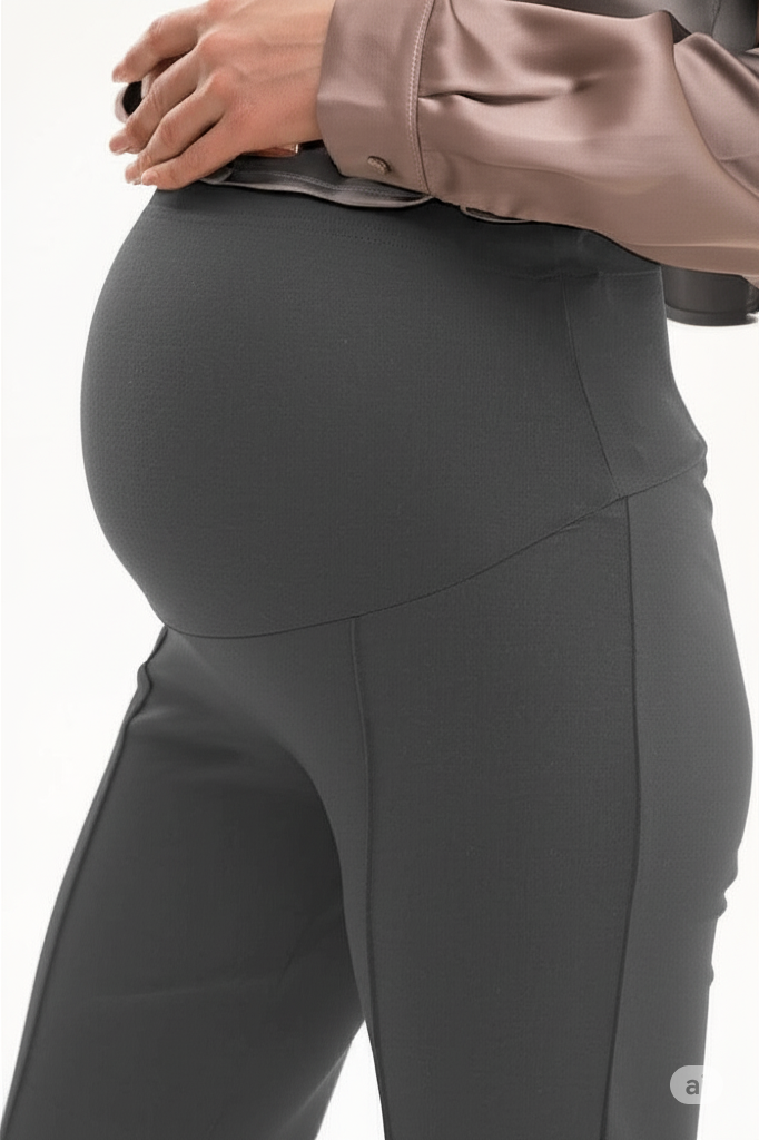 Повседневные офисные брюки для беременных прямого кроя с отстроченными вертикальными стрелками.