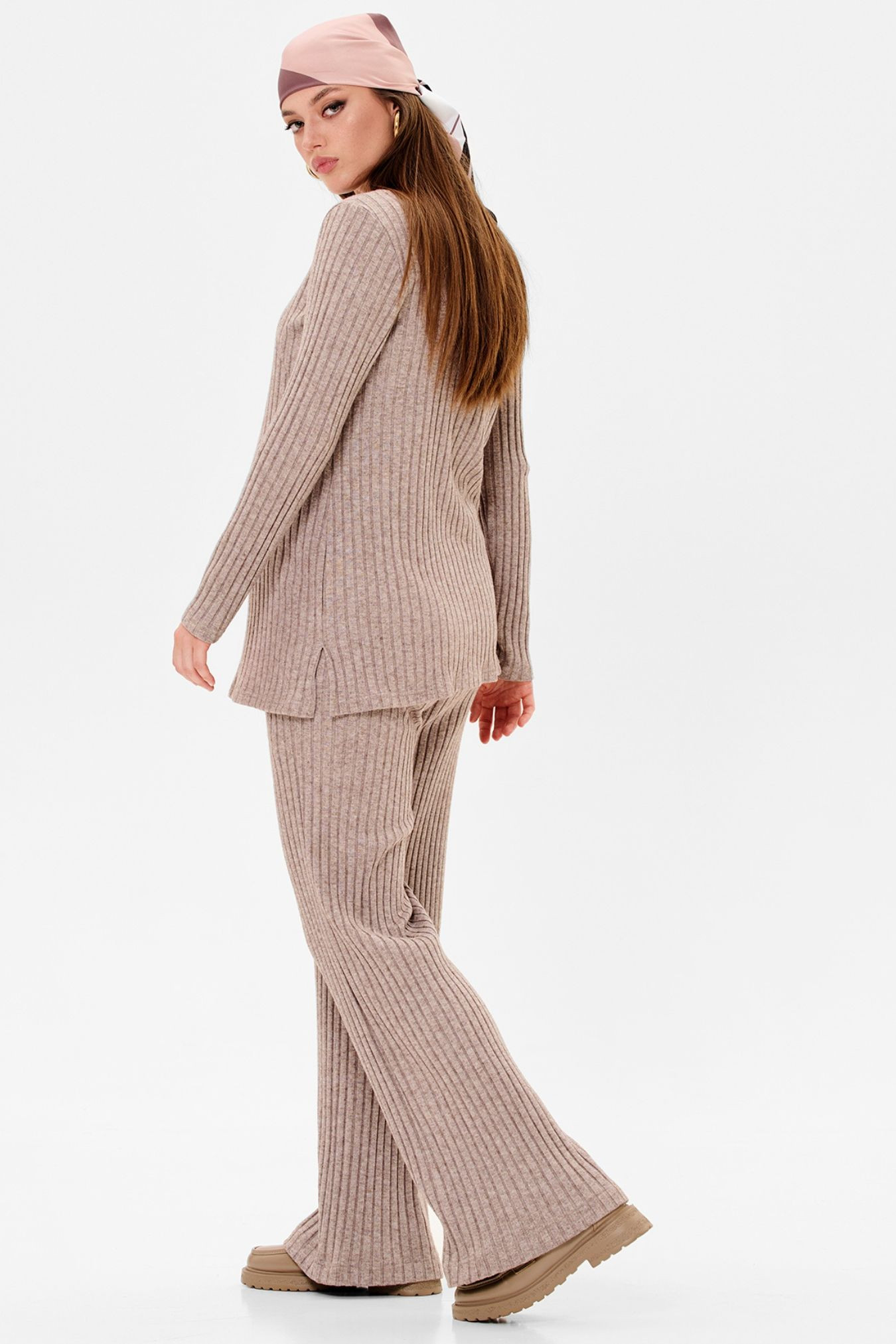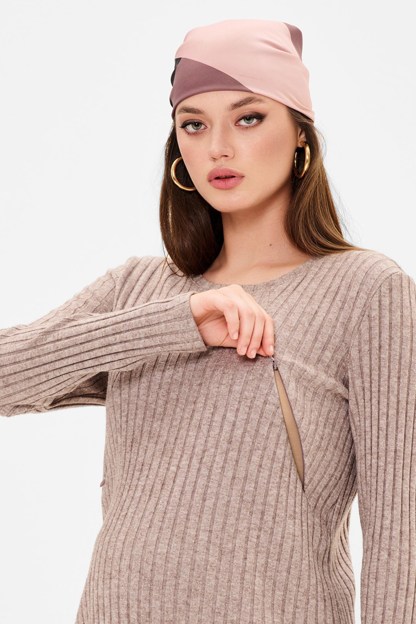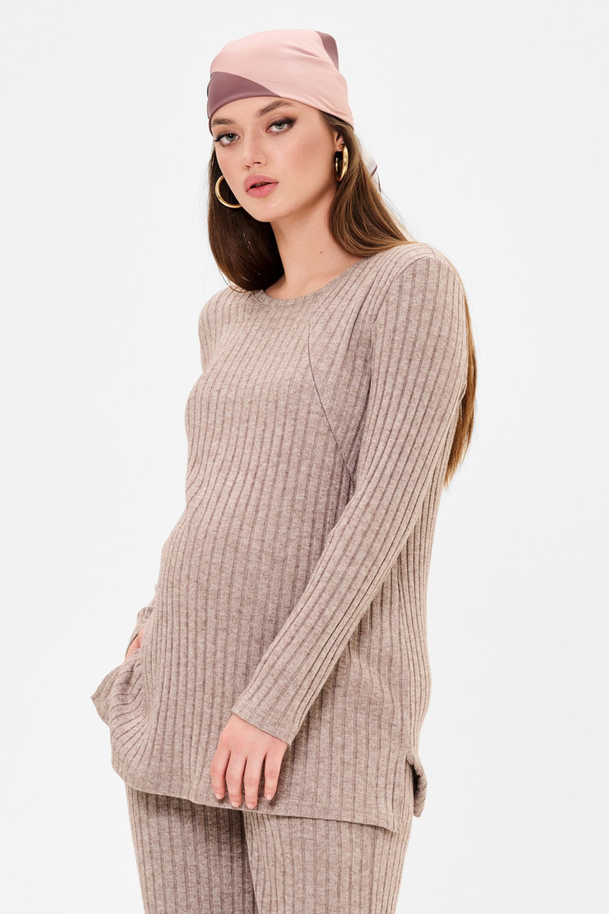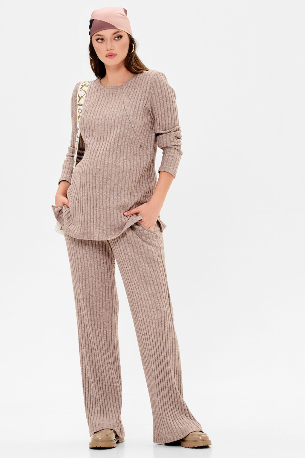 Комплект для беременных и кормящих мам из мягкого плотного трикотажного полотна в рубчик.