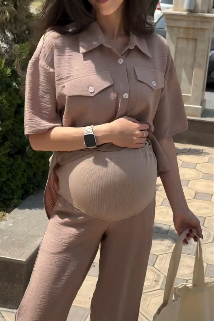 Костюм для беременных и кормящих ст907 иск.лён, капучино