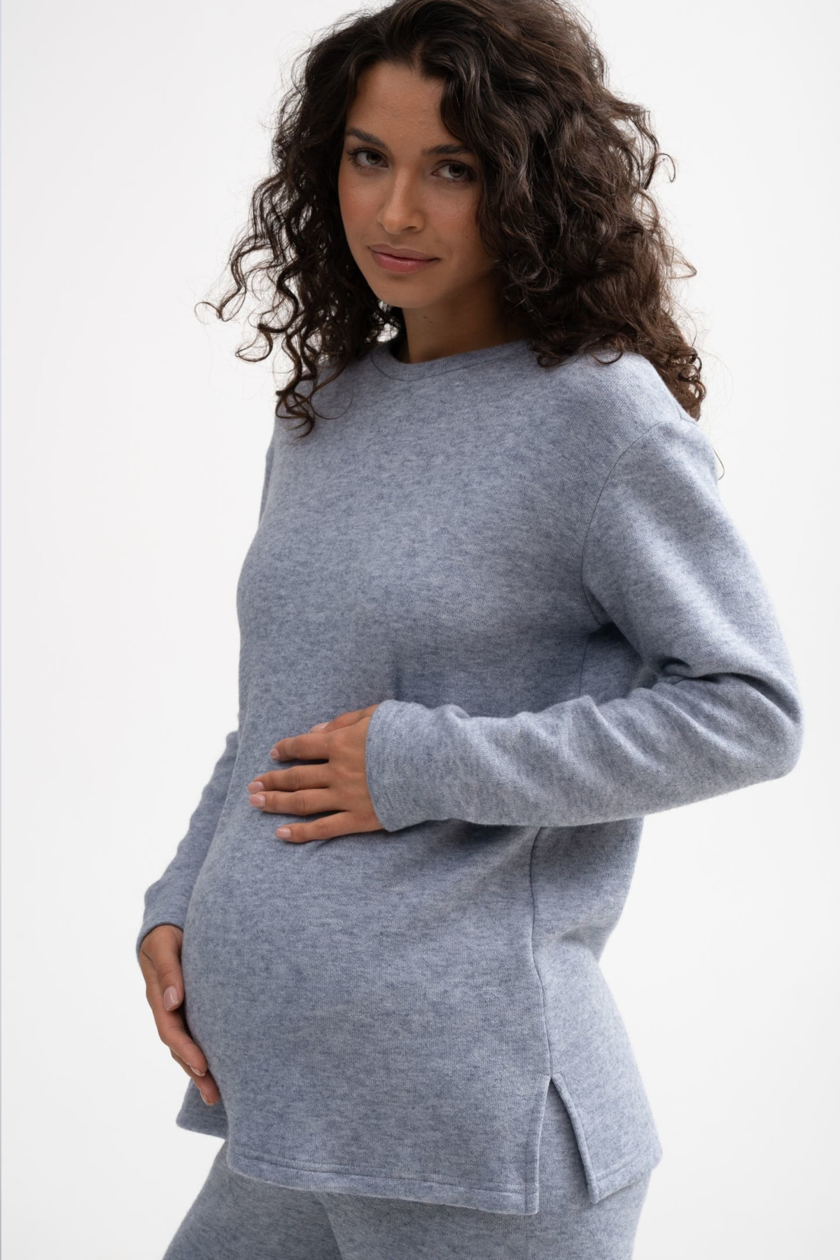 • Прямой силуэт джемпера с разрезами по бокам позволяет носить его как во время, так и после беременности.