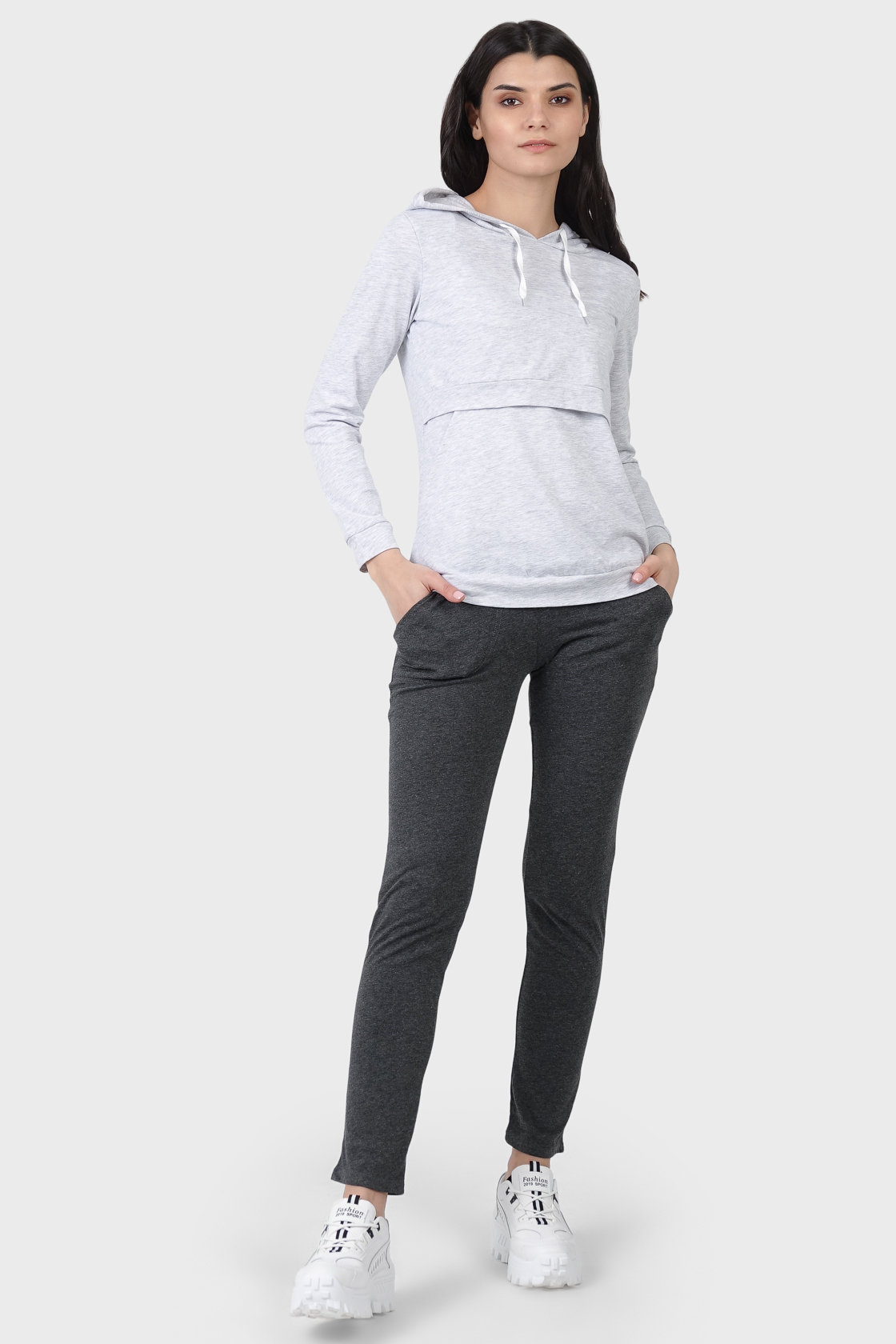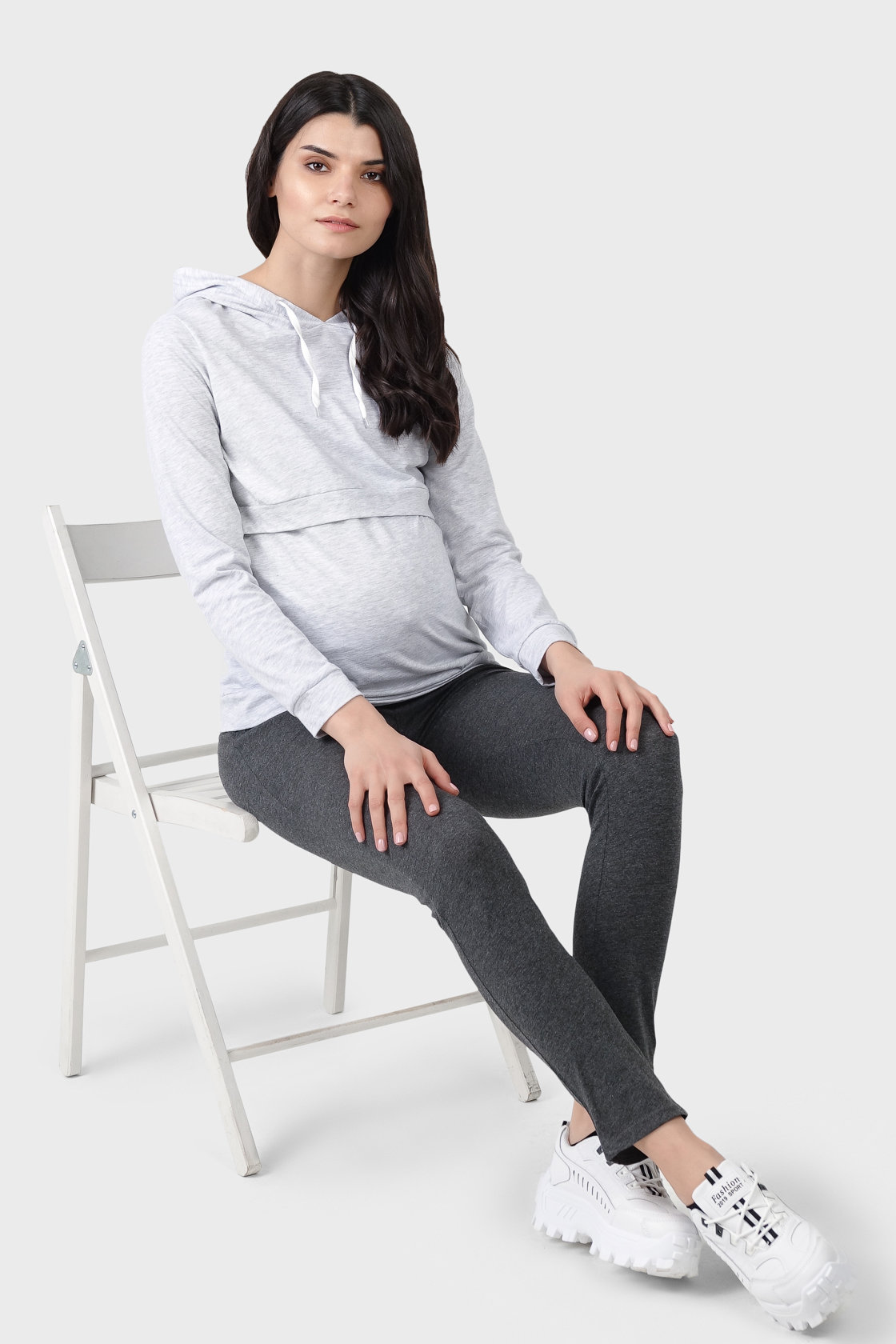 • Костюм можно носить как во время беременности, так и после неё. Брюки выполнены с мягким поясом под животик.