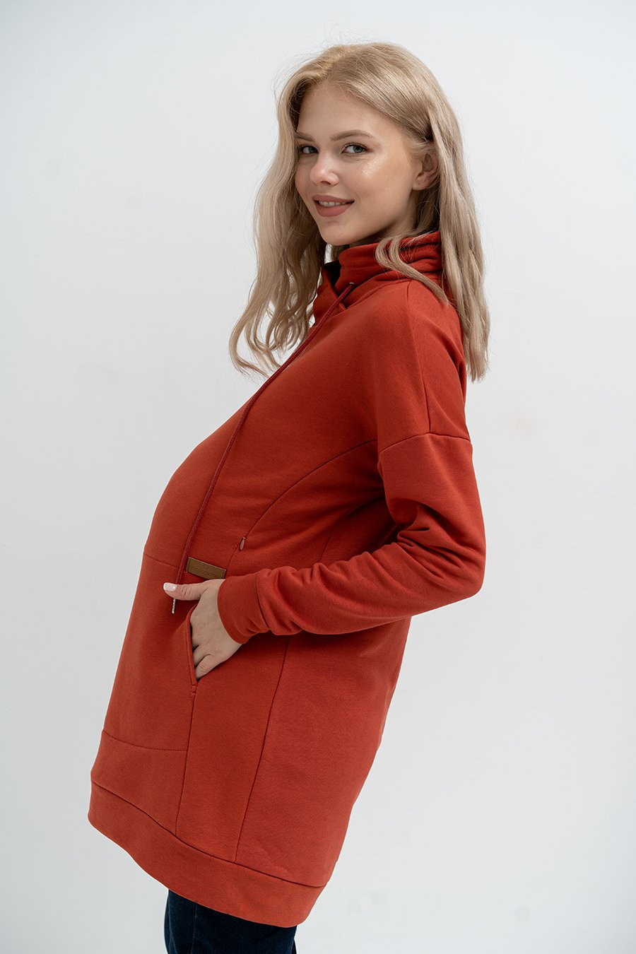 Объемный удлинённый джемпер для беременных и кормящих.