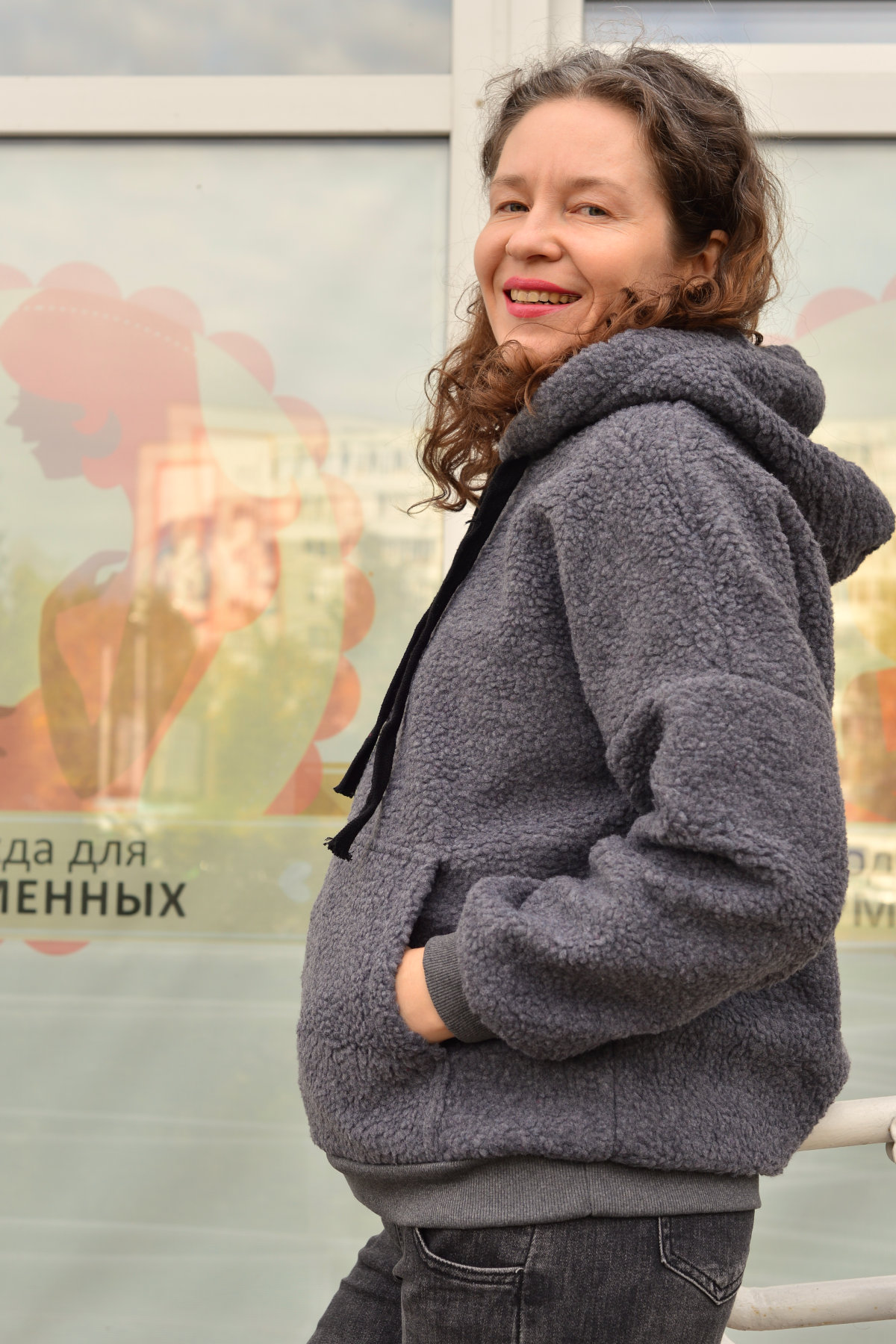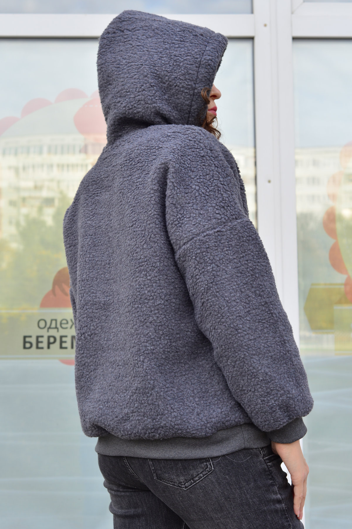 Тёплое худи из экомеха для беременных.