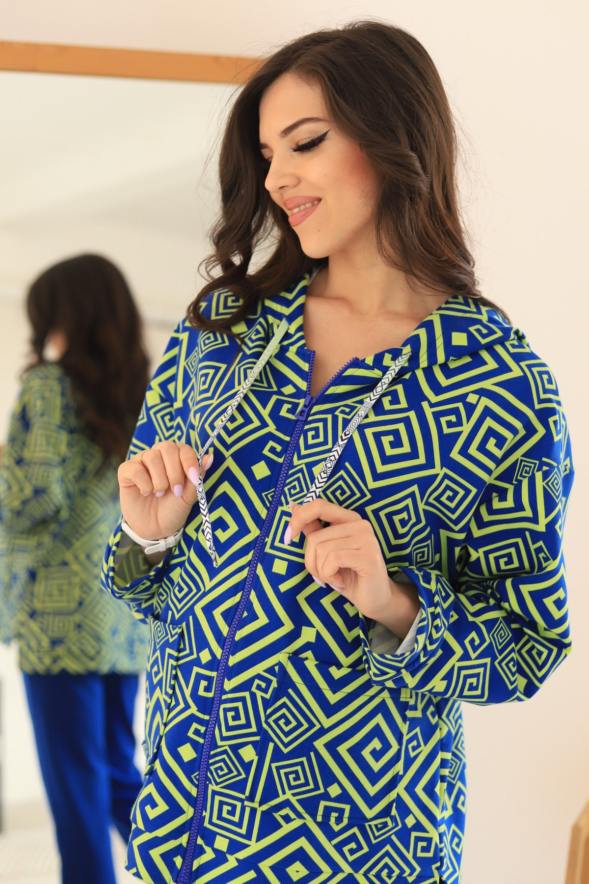 • Выполнена из трикотажа футер-двунитка.