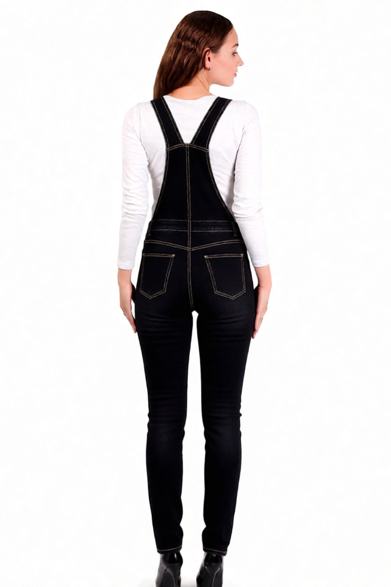 Особенность комбинезона – отстегивающийся верх. Расстегнув пуговицы, можно носить эту модель как обычные джинсы-скини для беременных.