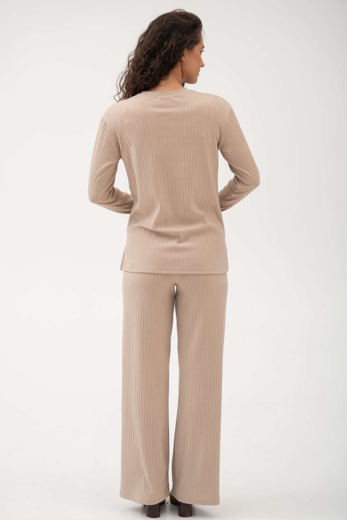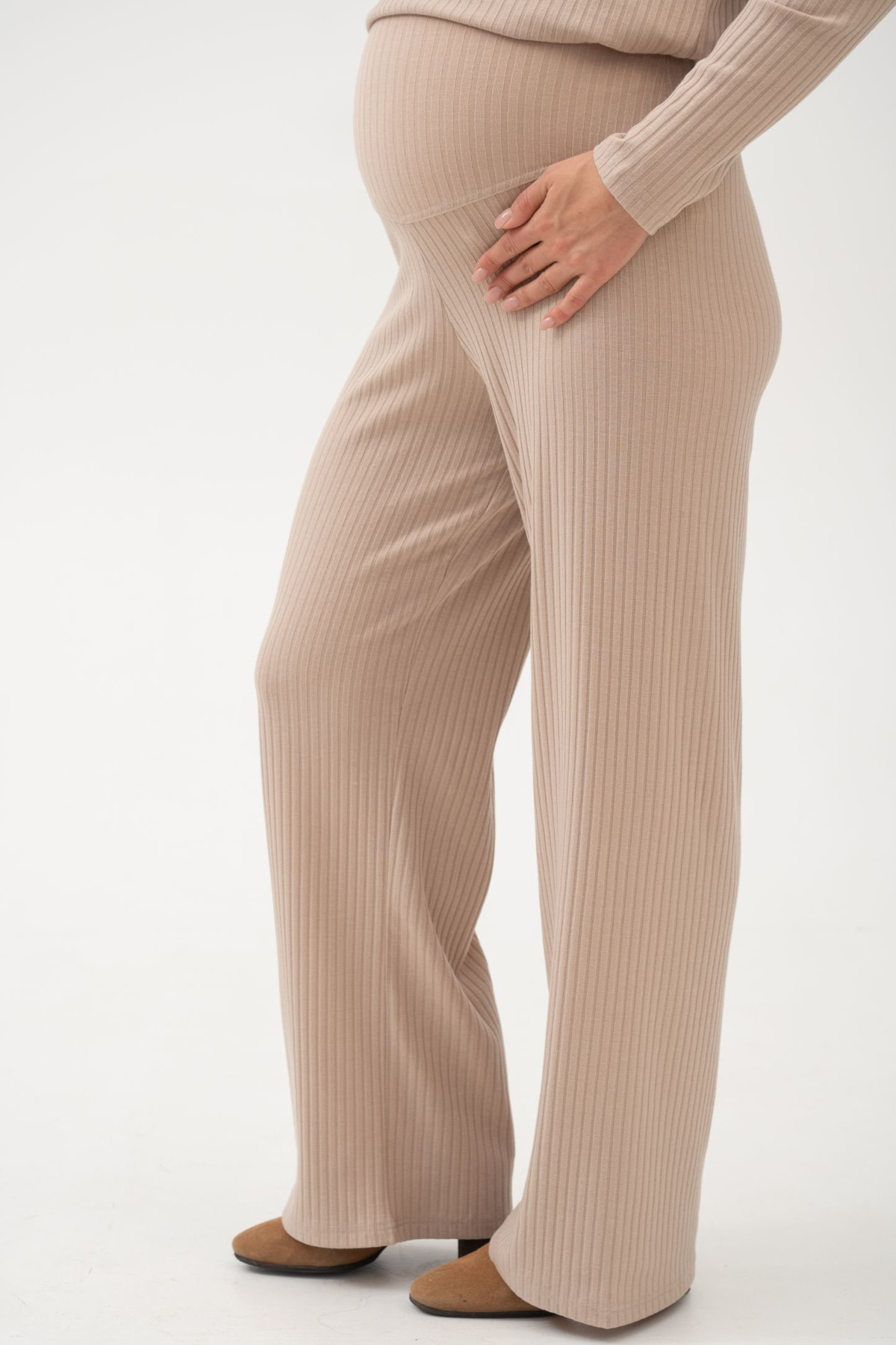 Брючный костюм для беременных из мягкого эластичного трикотажа в рубчик.