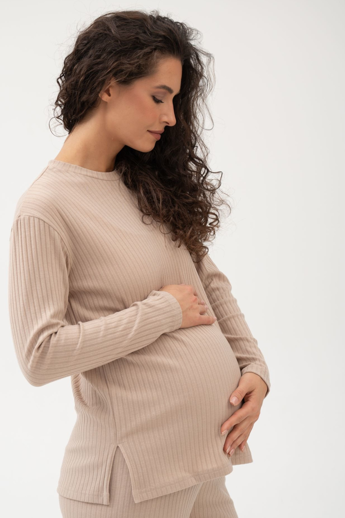 Костюм для беременных мм910 джемпер и брюки лапша бежевый