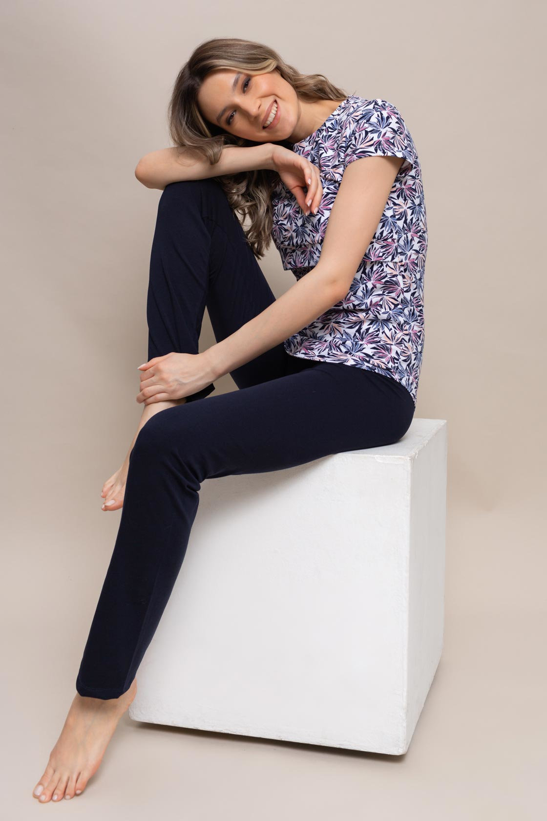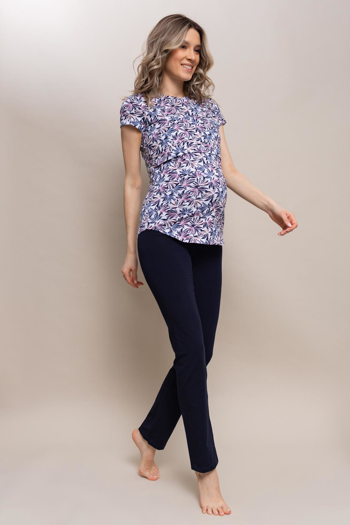 Комплект для дома – футболка для кормящих с секретом “подрез под грудью” и домашними брюками с высоким поясом на животик.