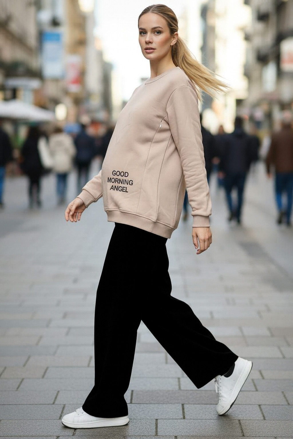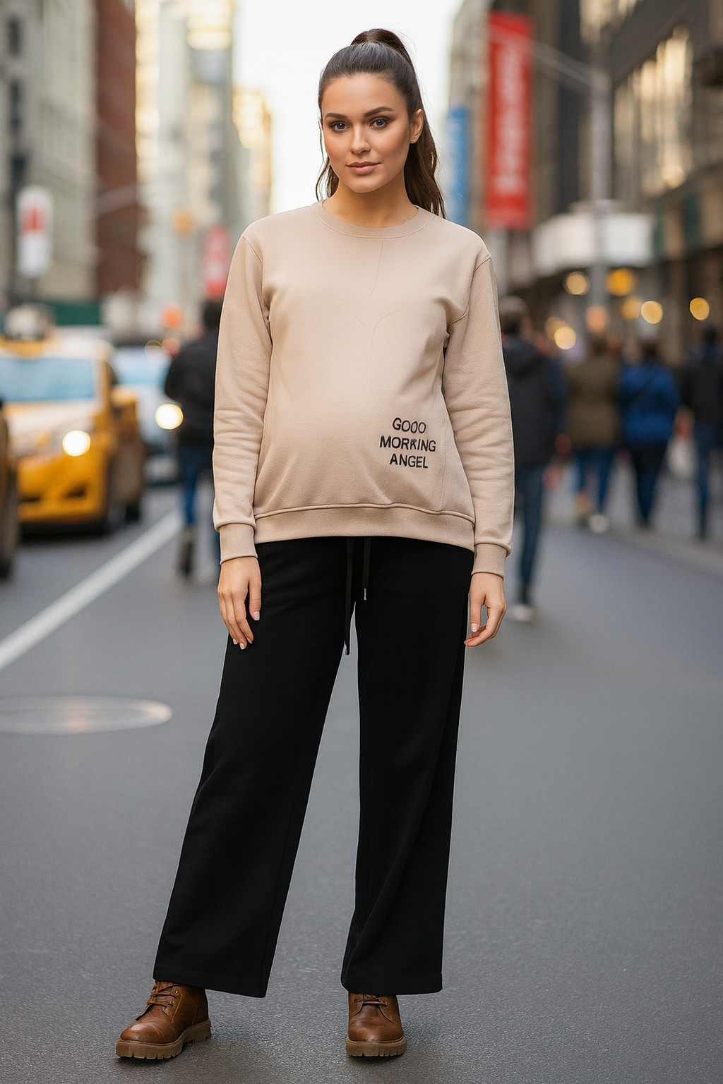 Утеплённые брюки для беременных свободного кроя из мягкого брючного материала.
